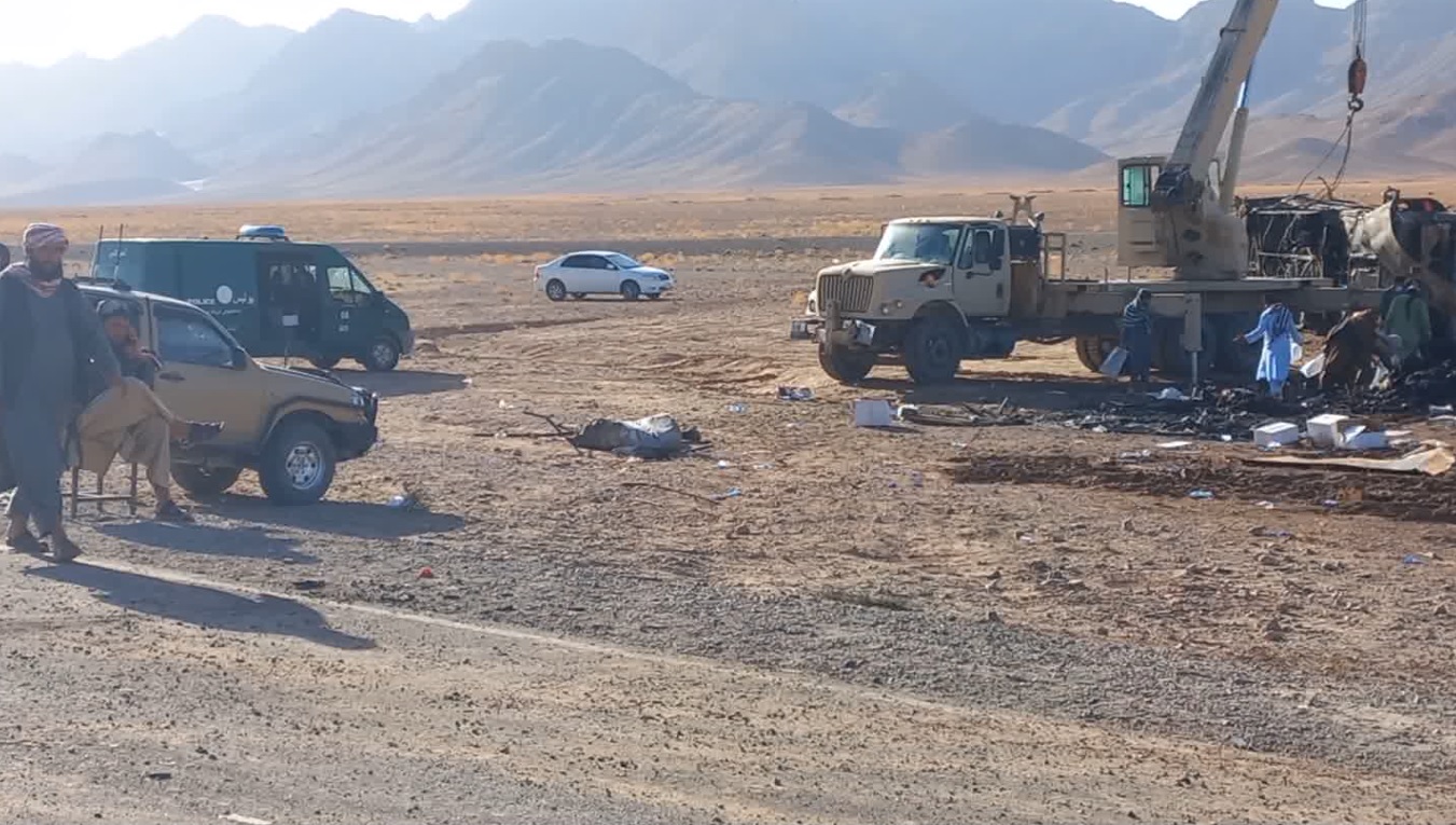 ځایي مسوولینو ويلي، يو لوی ۵۸۰ ډوله بس موټر چې له ایرانه راستانه شوي کډوال يې لېږدول، له يوه موټر سایکل او له هغه وروسته له يوه بل مازدا ډوله تېل لېږدونکي موټر سره ټکر شوی او دغه مرګونې پېښه یې رامنځته کړې ده.