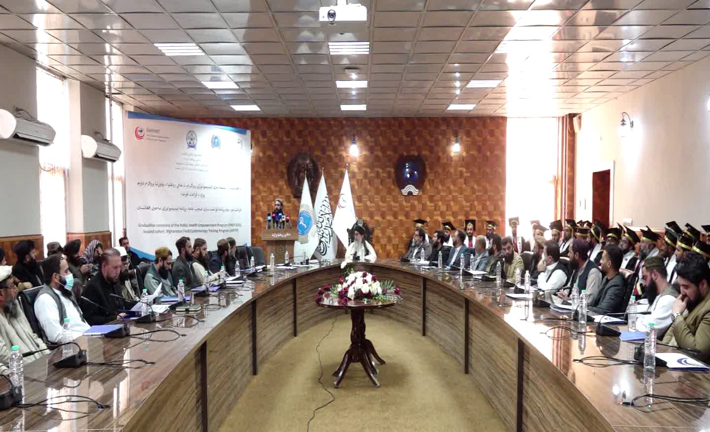د امفنېټ موسسې استازی سیفالدین الهنداوي وايي: « زه د امفنیت د مشر په استازیتوب دلته خبرې کوم. د مدیترانې په حوزه کې د شته ستونزو سربېره خوښ یو چې د عامې روغتیا په برخه کې د وړتیاو د لوړولو له روزنیز مرکز نه د ډاکټرانو د فراغت شاهد یو. موږ د پخوا په شان له افغانستان سره د عامې روغتیا په برخه کې همکاریو او مالي مرستو ته ژمن یو.»